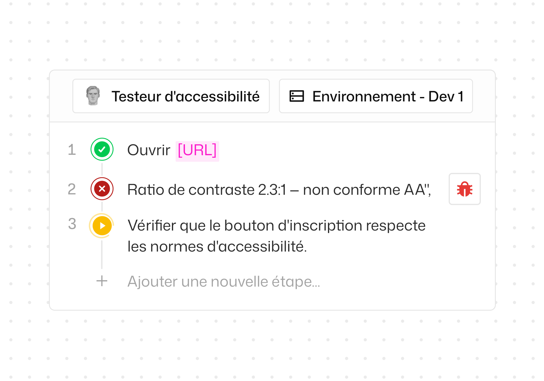 Ajoutez le persona Accessibility Tester à votre pipeline CI. Si une violation des WCAG est détectée, la compilation échoue automatiquement. L'accessibilité reste appliquée à chaque version.
