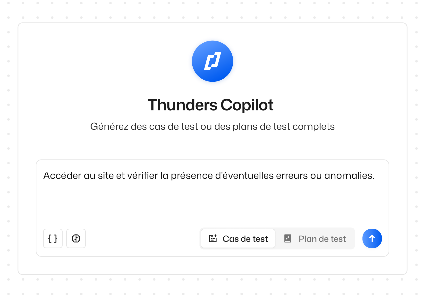 Générez des tests automatisés à partir du langage naturel ou du contexte du produit. Décrivez le scénario que vous souhaitez valider et Thunders en fera un test exécutable. Pas de scripts, pas de verrouillage du framework.