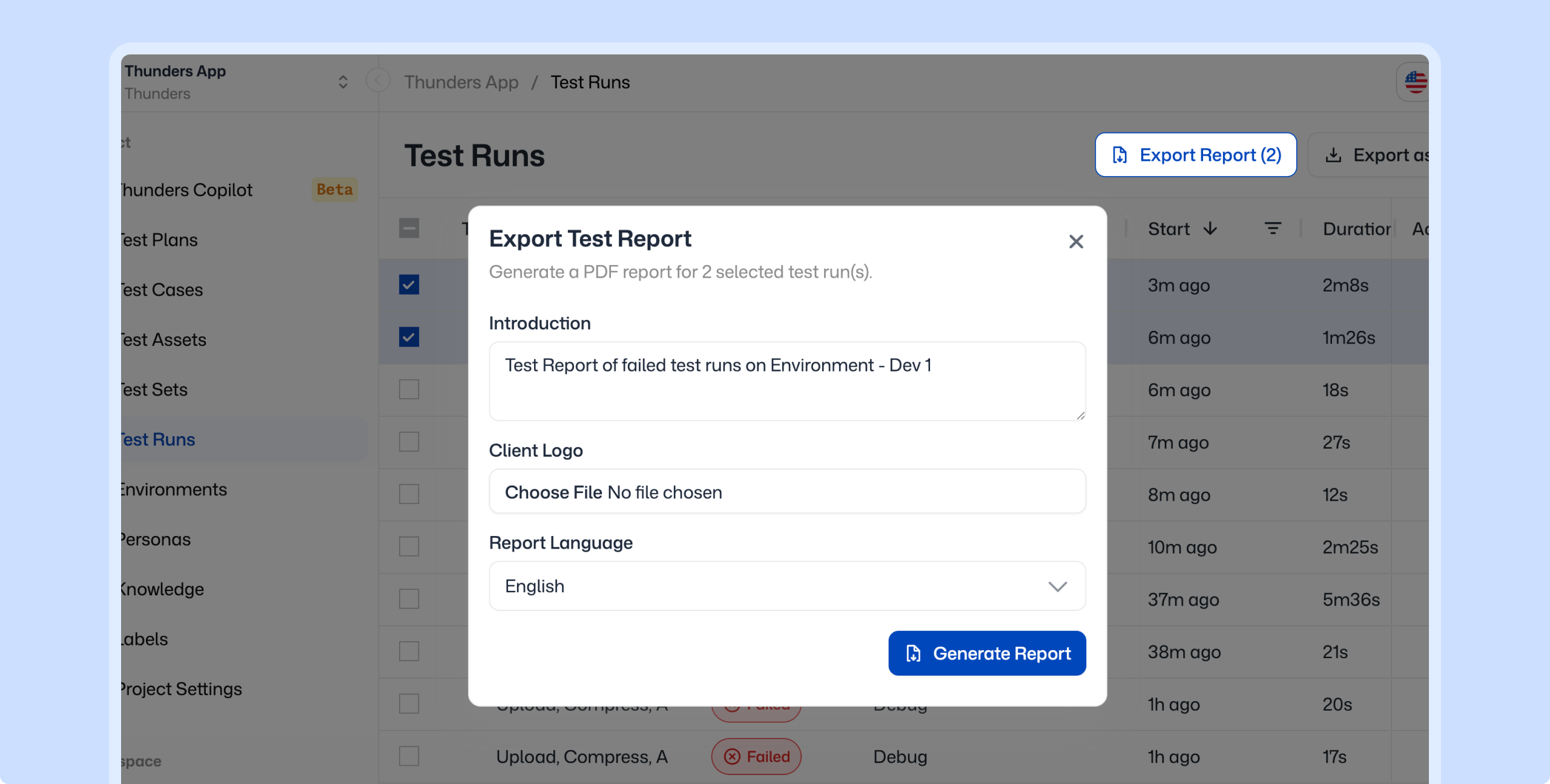 Thunders Copilot reviews your tests like a senior QA would. It catches vague scenarios - suggests edge cases - and spots duplicates. Over time - your suite gets sharper and your tests produce more accurate results.