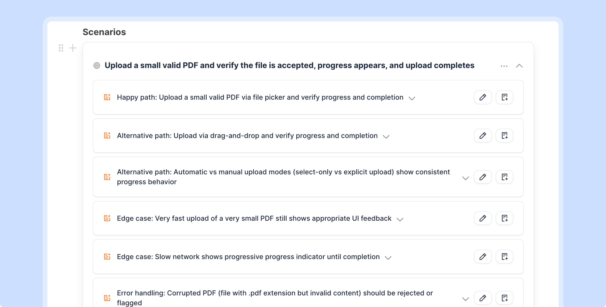 Yes. Paste a spec - PRD - or any product context into the Test Plan editor. Thunders generates a structured plan with scenarios and edge cases. Edit it collaboratively with AI - then generate runnable test cases directly from the plan.